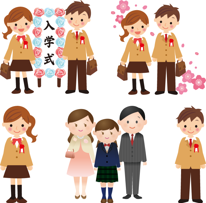 フリーイラスト 5種類の入学式を迎える高校生のセット