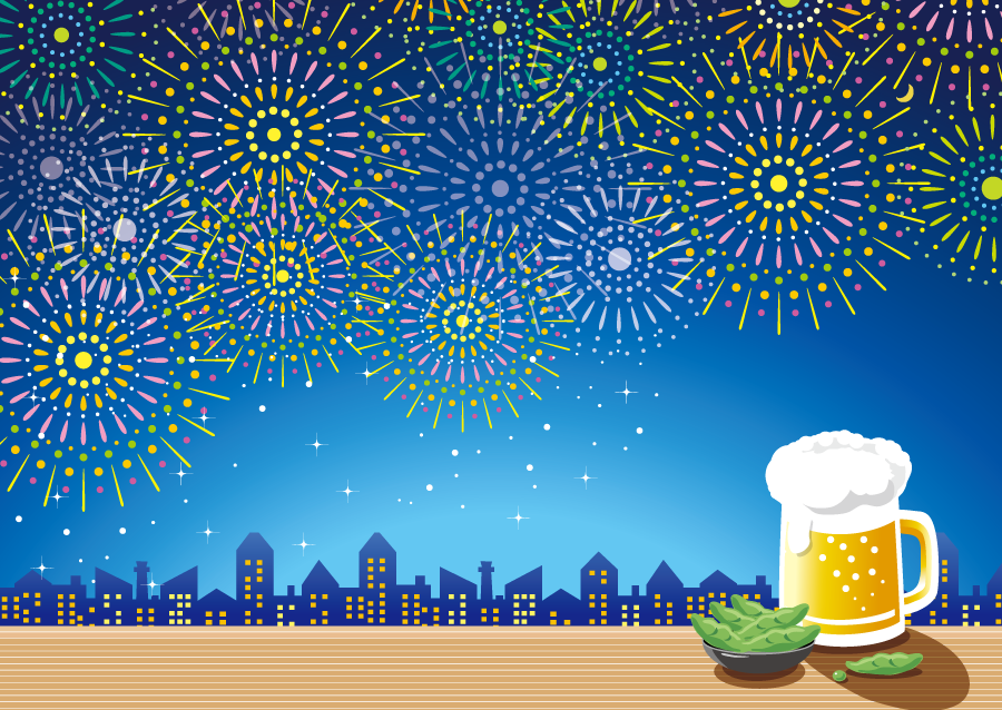 今回は、街の上空に打ち上げられる花火とジョッキに入った生ビールとおつまみのエダマメの画像を使ってアハ!体験ゲームを制作しました。